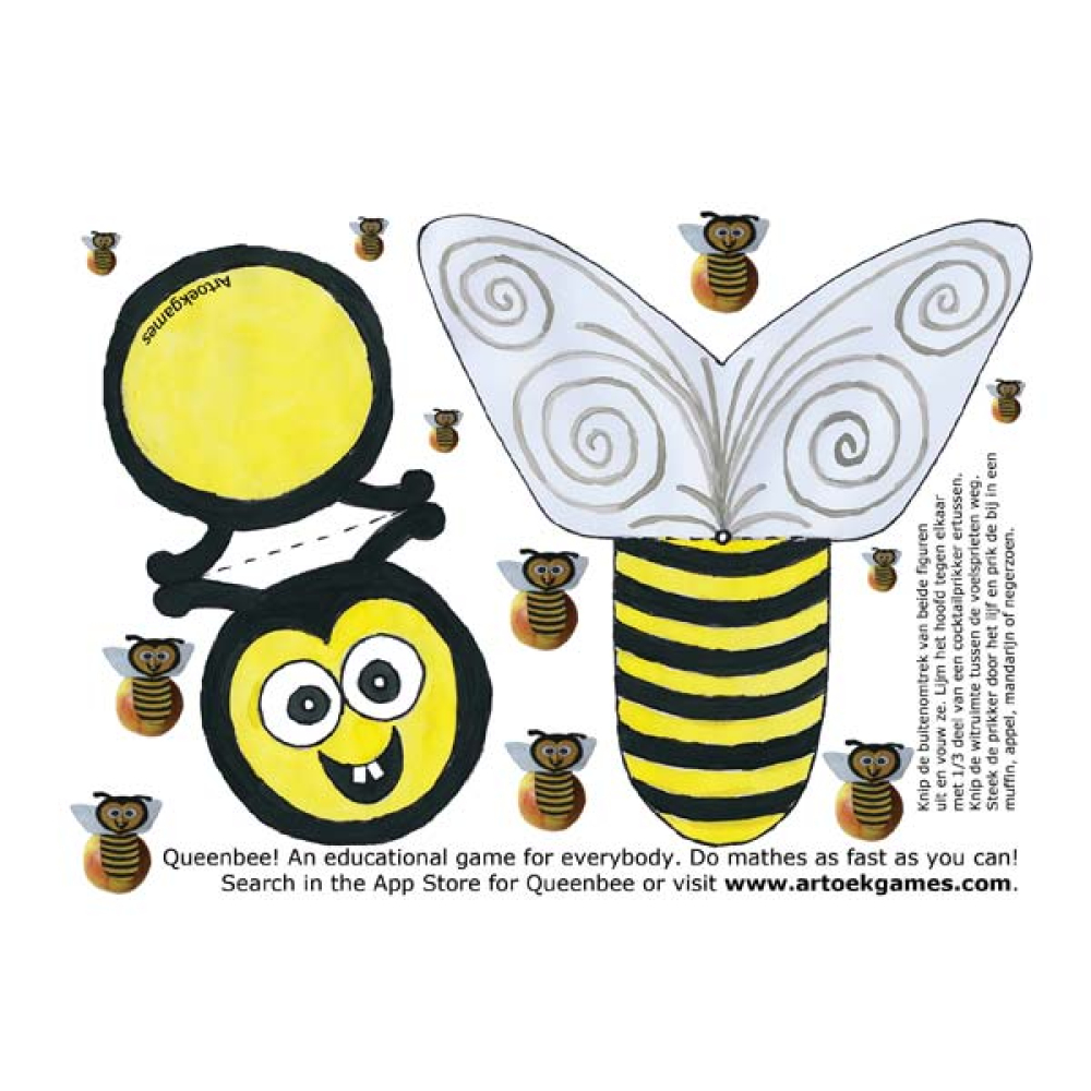 Je kunt de bij prikken in een appel, mandarijn, negerzoen. Of bovenaan een satéprikker voor een kaas/fruittraktatie.