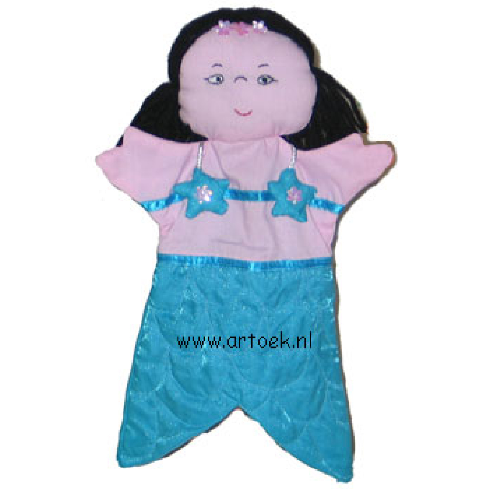 Mooi gemaakte poppenkastpop. Zeemeermin. Geen druk- of plakwerk, alles is geborduurd of geappliceerd.