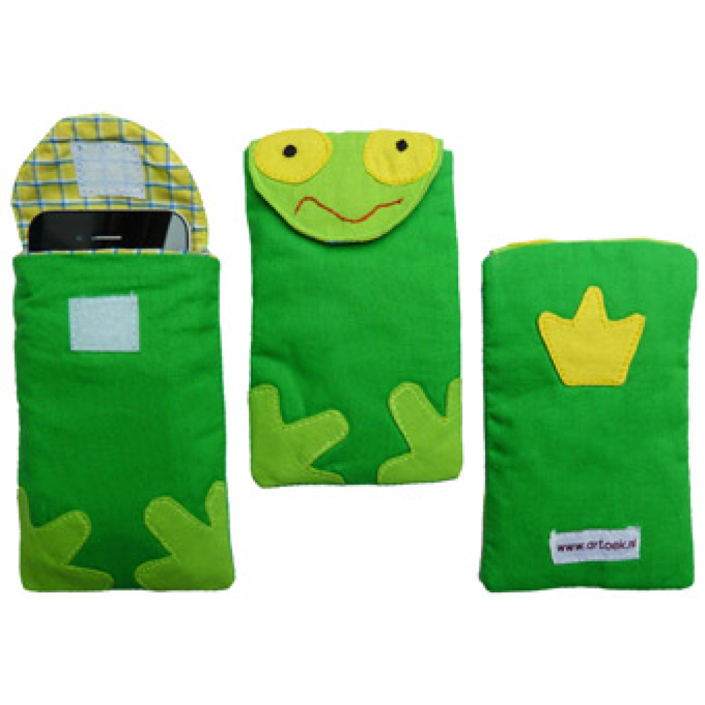Katoenen gevoerd telefoonhoesje. Flap sluit met klittenband. De hoesjes zijn handgemaakt en daarom niet strak passen. Smartphones tot 12,5 x 7,5 cm passen er in.