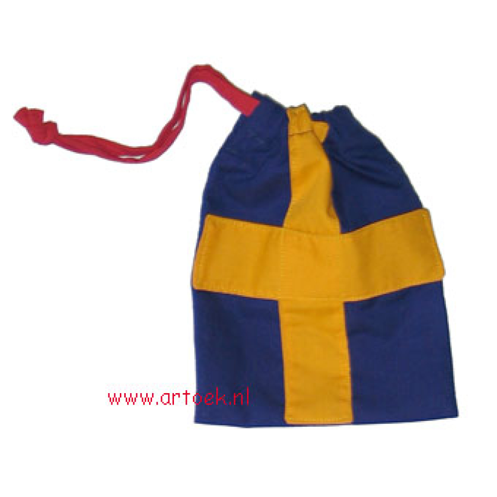 Knikkerzak gevoerd in de kleur van het aantreklint. Ook zeer geschikt als snoepuitdeelzakje bij een themafeest.