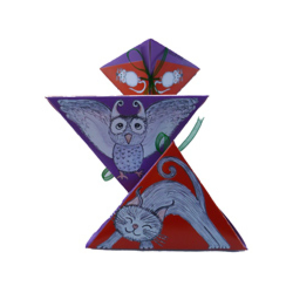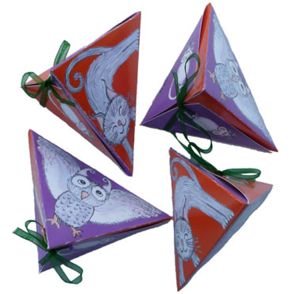Kaart waarvan je een traktatie-doosje kunt vouwen.