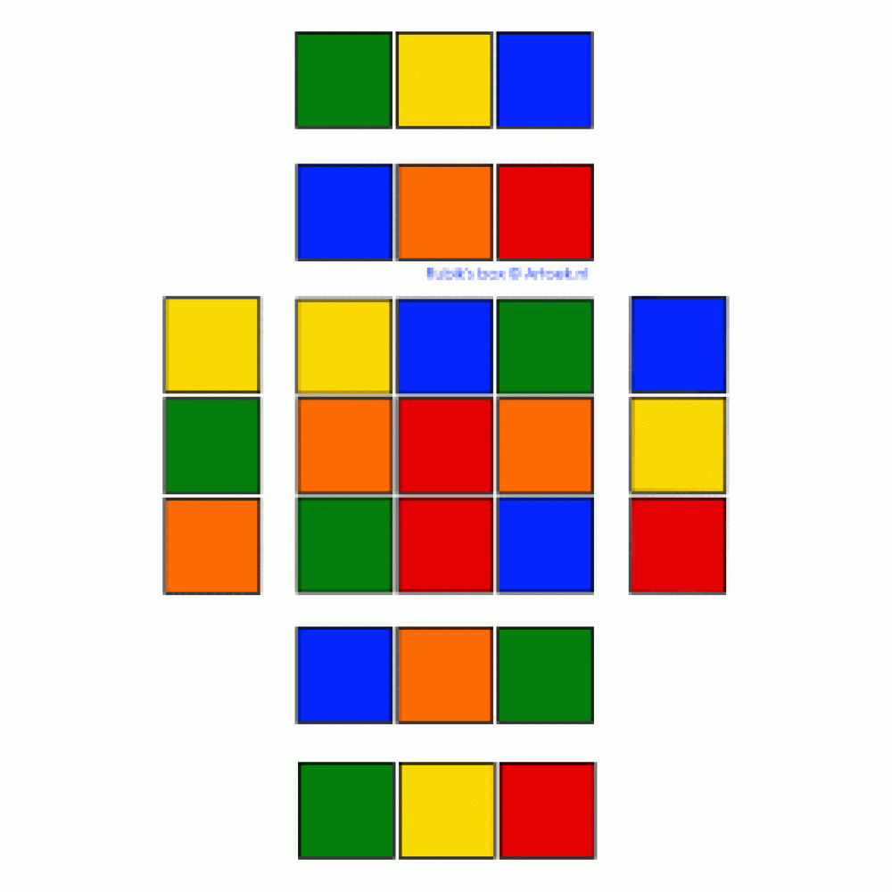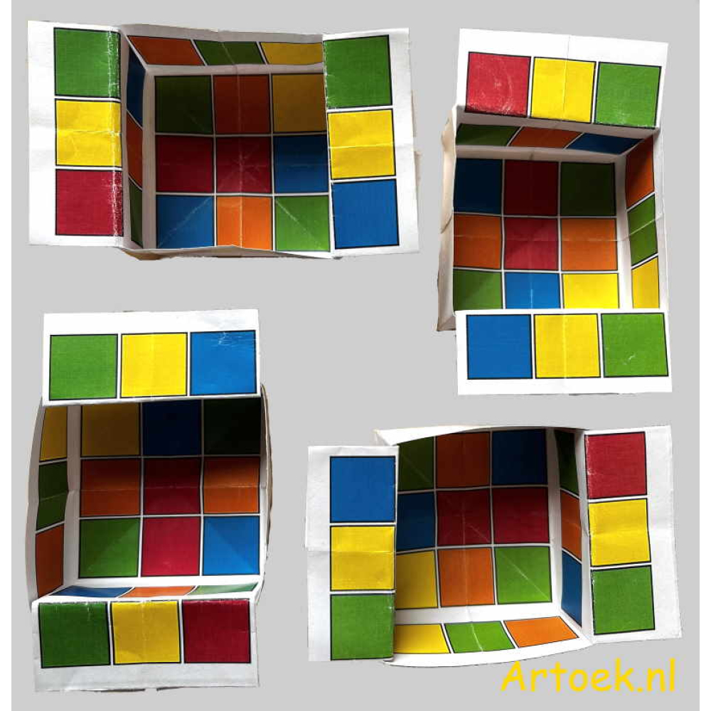 Makkelijk te vouwen bakje (halve kubus), in jaren '80 stijl. Voor fans van de Rubik's cube.