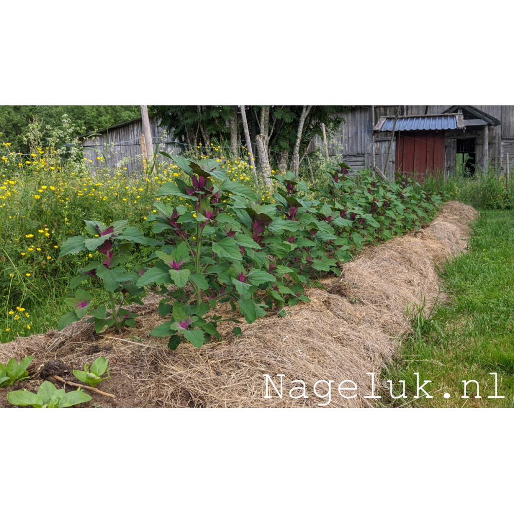 Een geweldige plant voor je moestuin. Kan tot wel 3 meter hoog worden. Bladeren zijn als spinazie te verwerken. De decoratieve roze topjes kun je als sla eten.